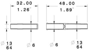 If you look at the drawing above you'll see that the length of the female is 48mm long and the reamed male slide recess is 6mm in diameter.